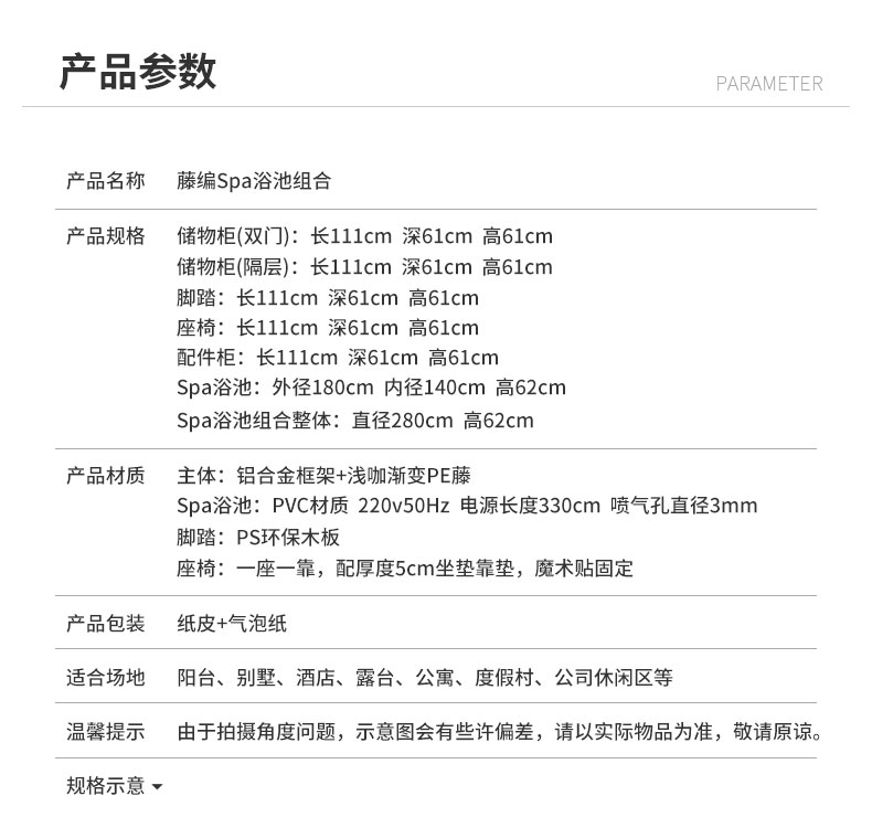 - 材質:鋁合金+PE藤