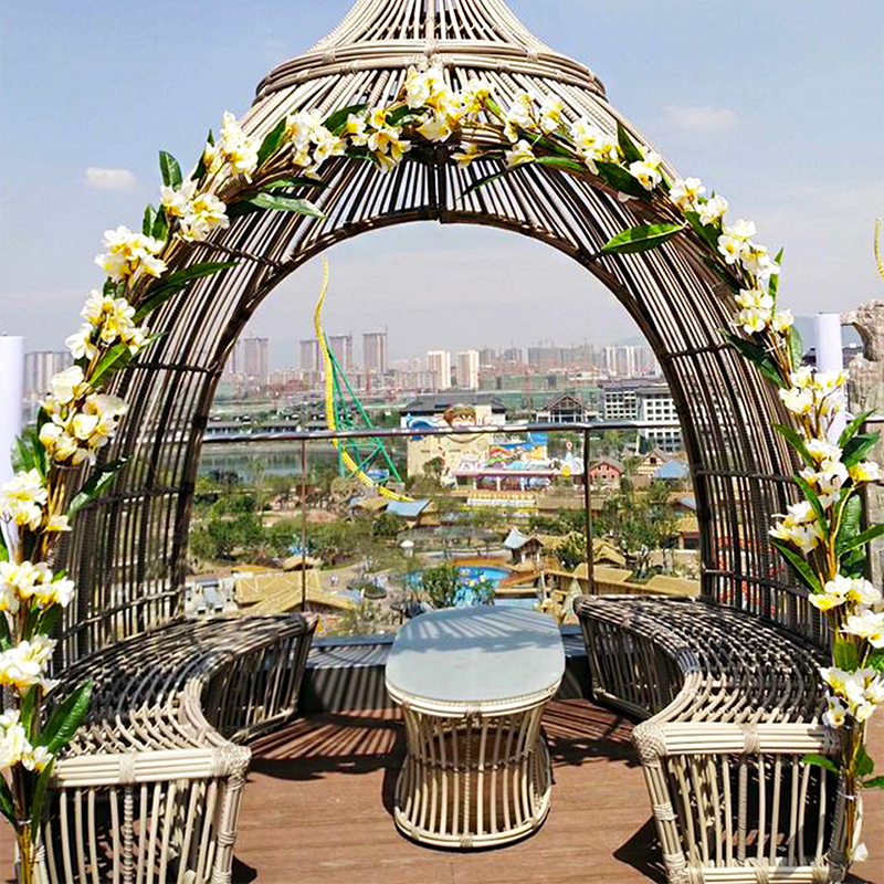 戶外家具多采用PE藤編織而成,因為PE藤無毒無害,耐曬防雨抗老化,放在室外風吹雨淋3-5年都不褪色,和嬰兒奶嘴-個材質,非常的安全環保,純手工編織的包裹感也很強哦。
