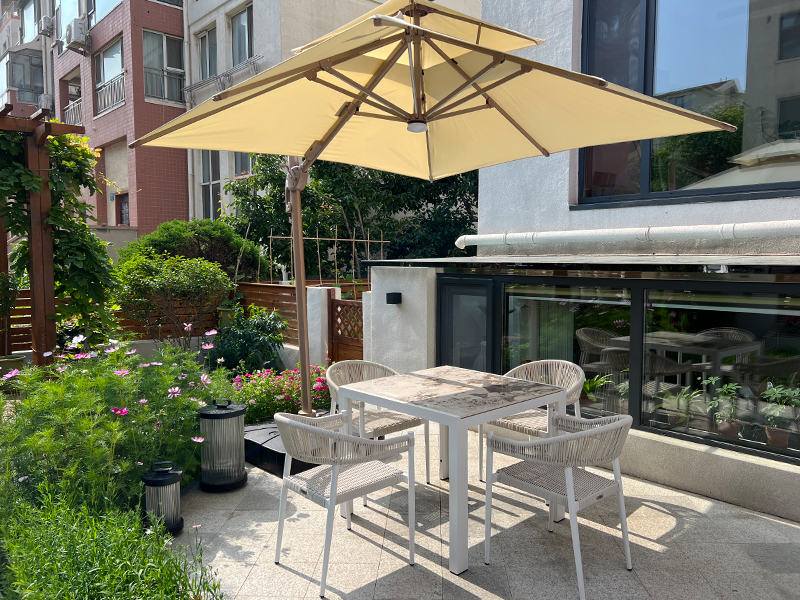 午后,藤椅、圓桌、一杯香茗,伴著花香,靜享閱讀時(shí)光,或是與家人閑坐聊天,孩子在一旁嬉笑玩耍,溫馨四溢。