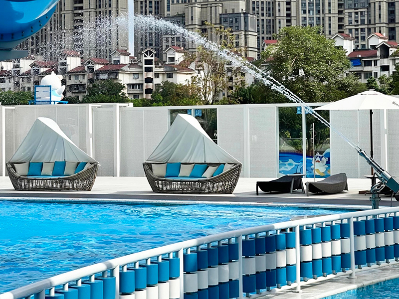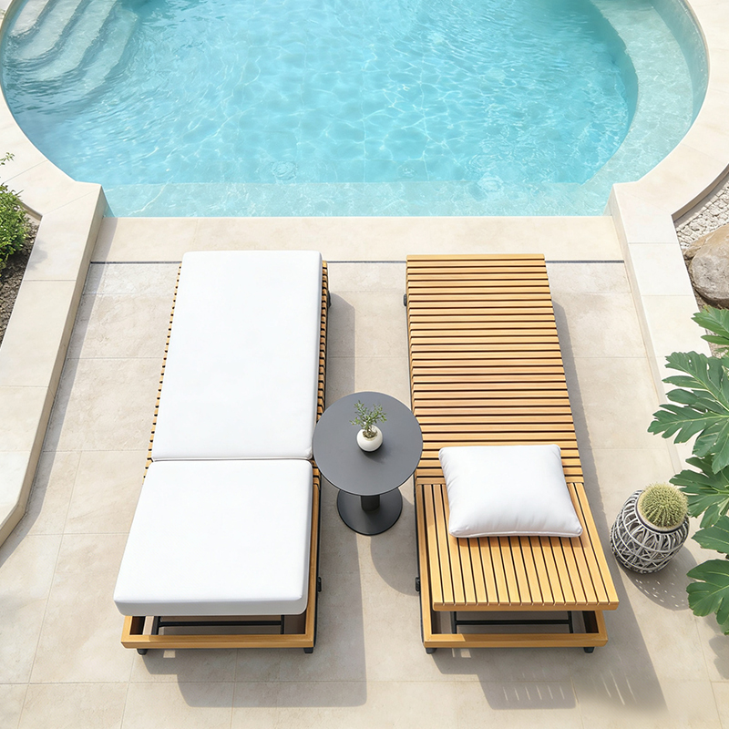 步入湯池,霧氣氤氳。當身體浸入暖泉,視線卻總不自覺落向池邊——那排靜靜守候的泳池躺椅,線條溫潤,氣質從容。