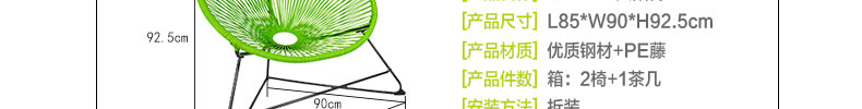 - 材質:金屬框架+PE細藤編制
