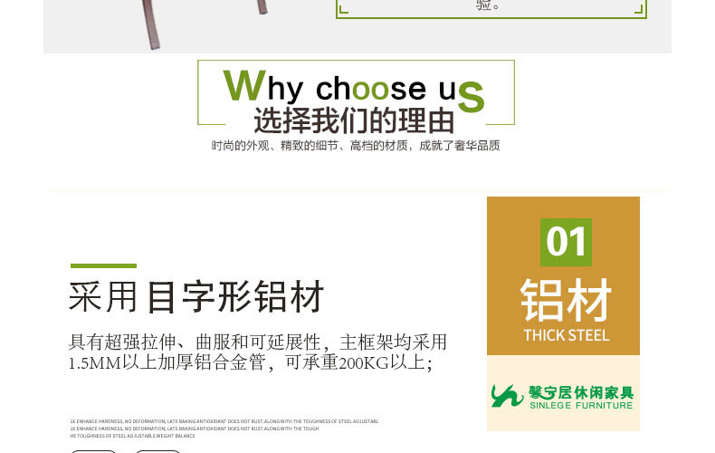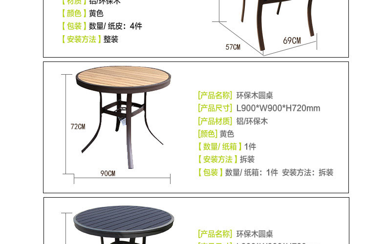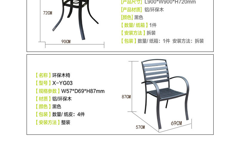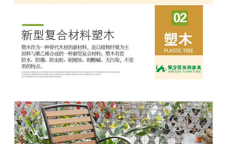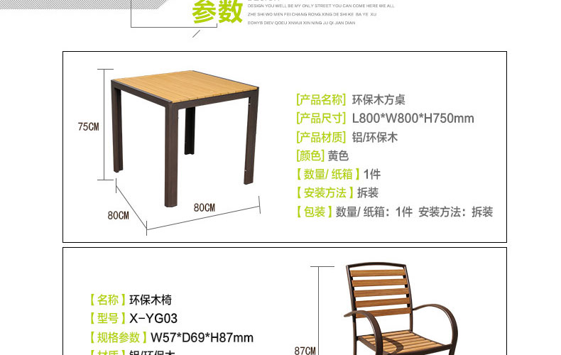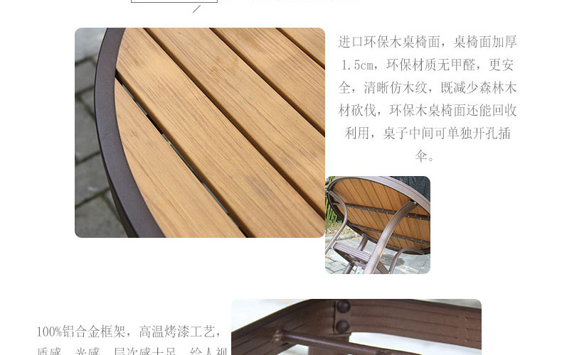 - 材質:框架為鋁合金,靠背、椅面為環保木
