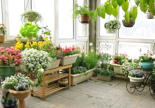 陽臺,是用來讓您跟大自然親近的地方,那么,它的存在,就必須有花草的村托,除了借外景,也可以自己在陽臺上設計出幾個地方擺放花草或者種植花草。比如陽臺護欄上可以擺放花草,也可以在陽臺地面上擺上花草或者種植花草。