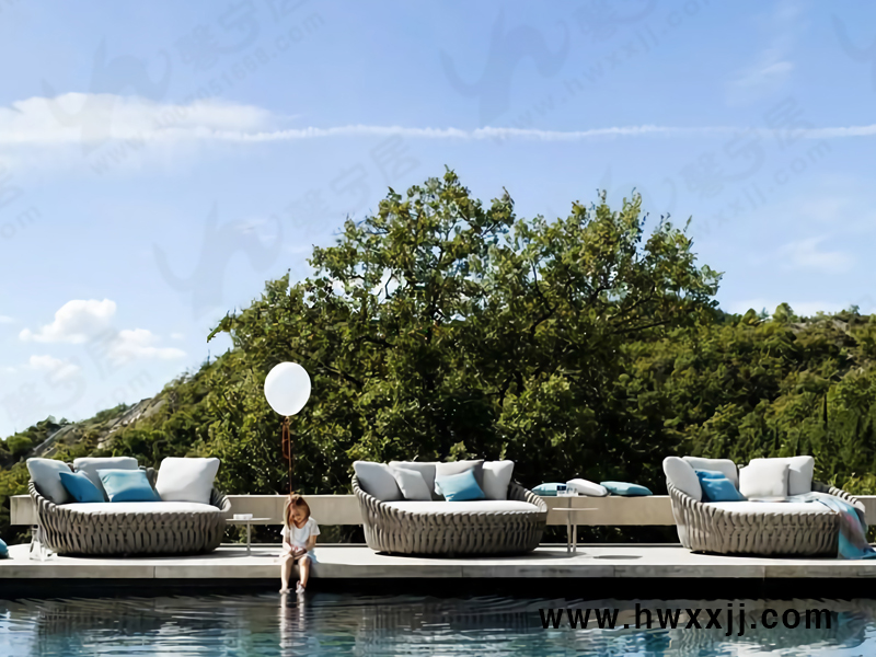 花園是生活場景的延伸,是悠然于天地中屬于家的第二個空間。因此,擺放在花園中的戶外家具不僅要具有娛樂、放松的功能,還要讓人們在享受樂趣的同時可以觀賞其中的美景,將自然情景與家居生活巧妙地聯系起來,營造出親近自然的生活趣味,因此花園家具產品的設計樣式以及工藝材質都需要結合場景來挑選搭配。