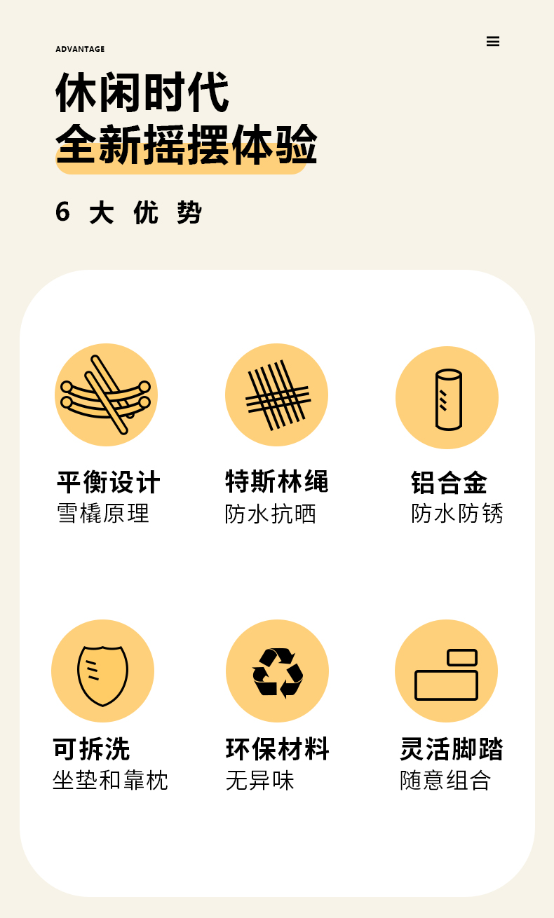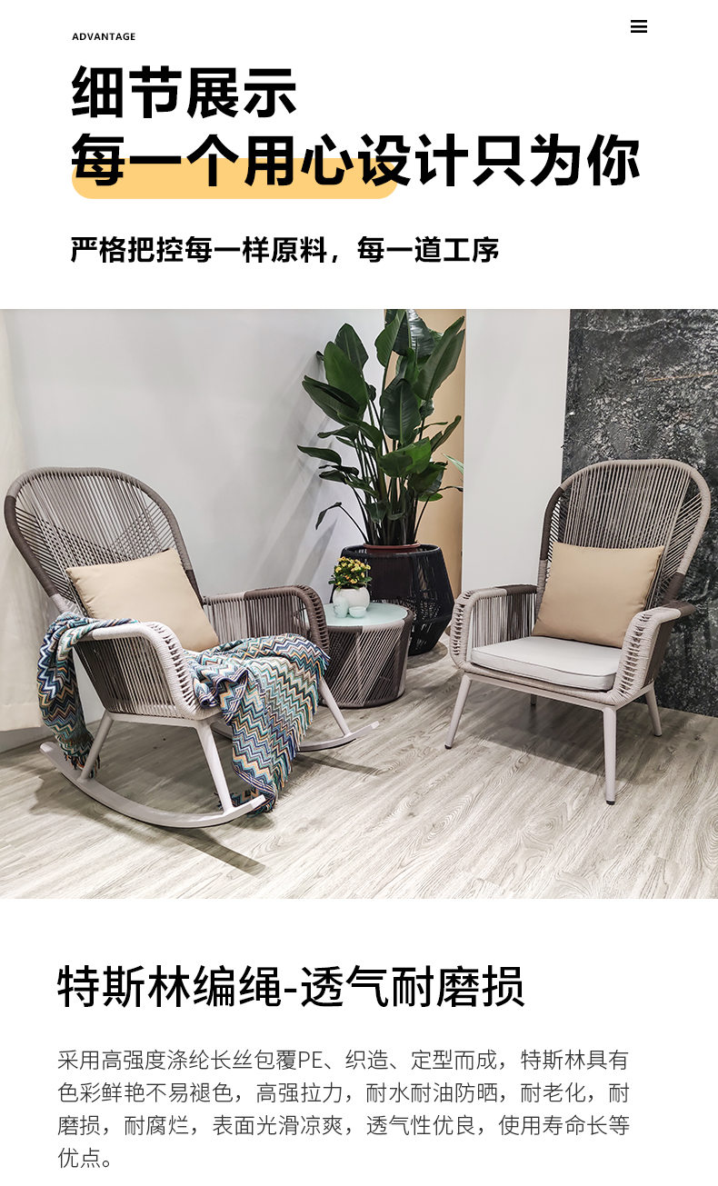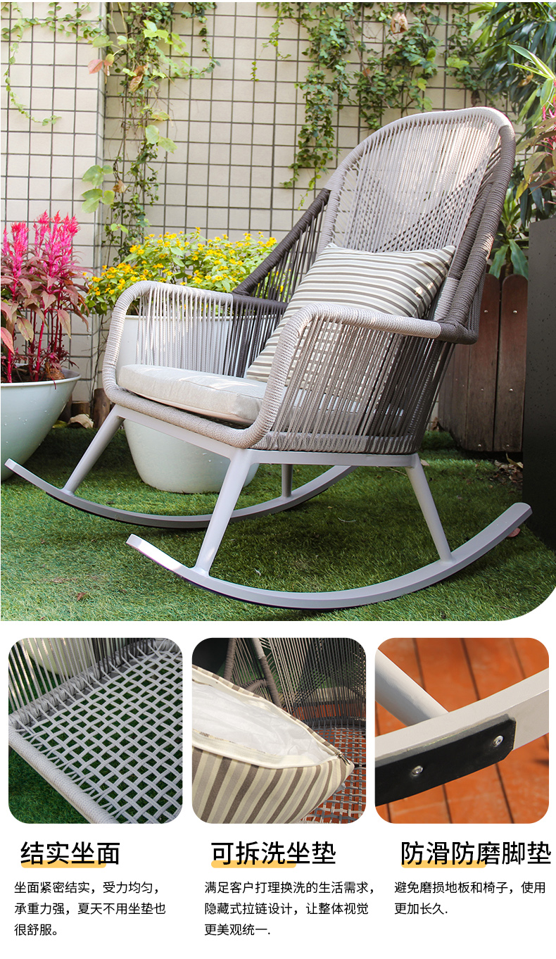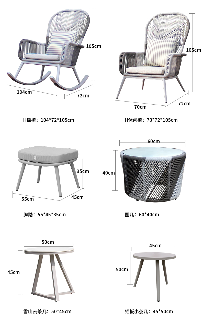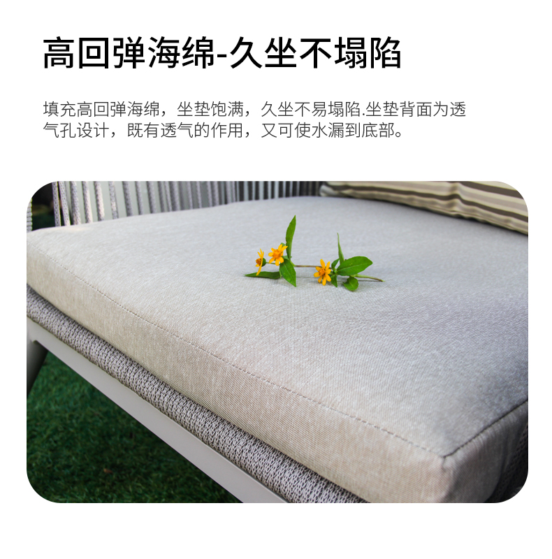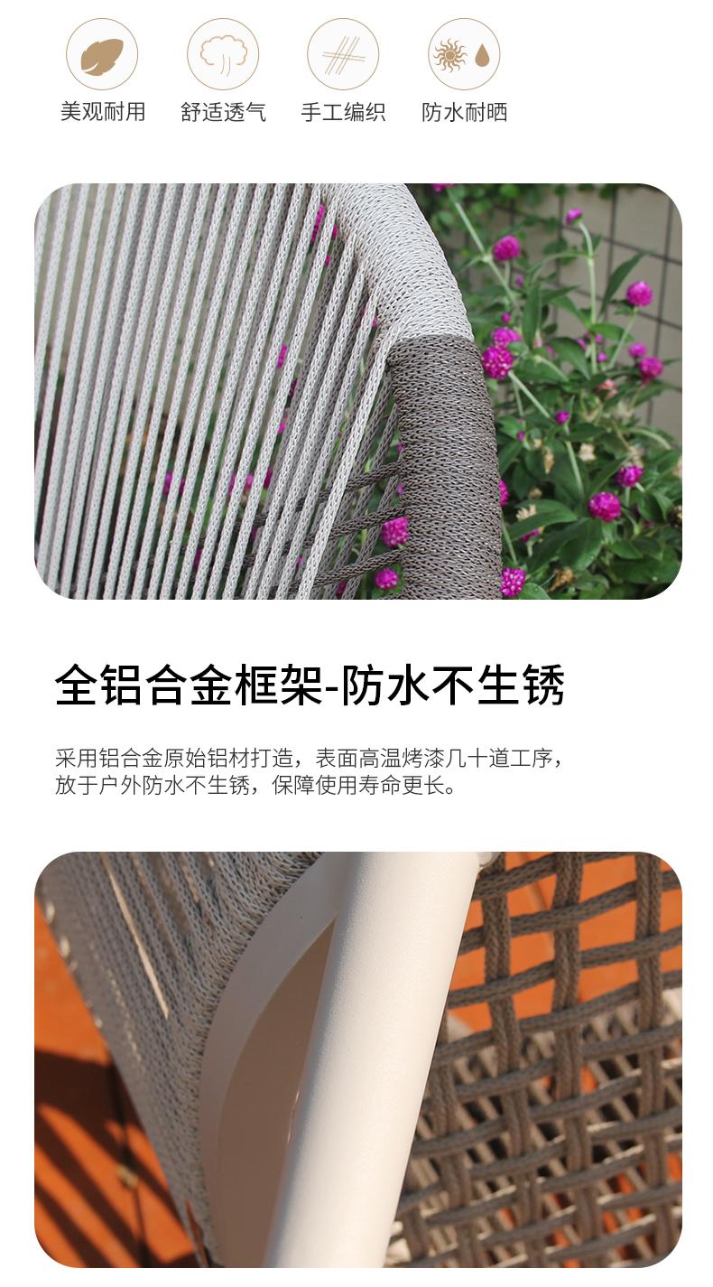 - 材質:鋁合金框架+特斯林繩+國產布坐墊軟包