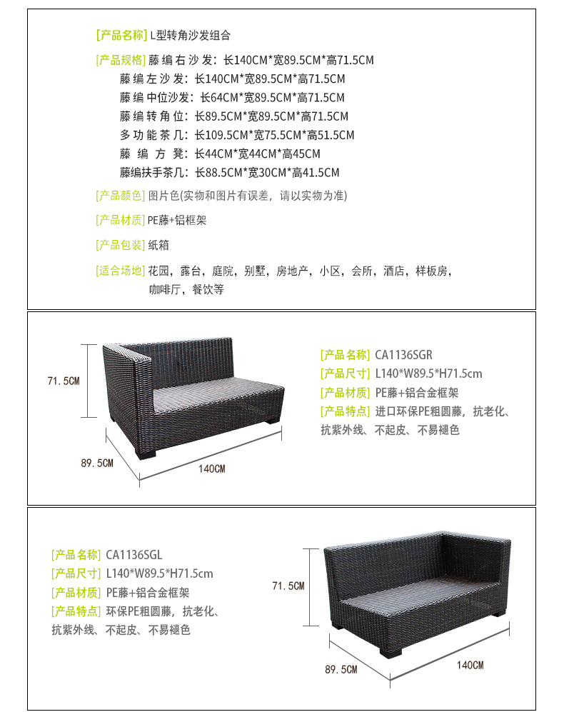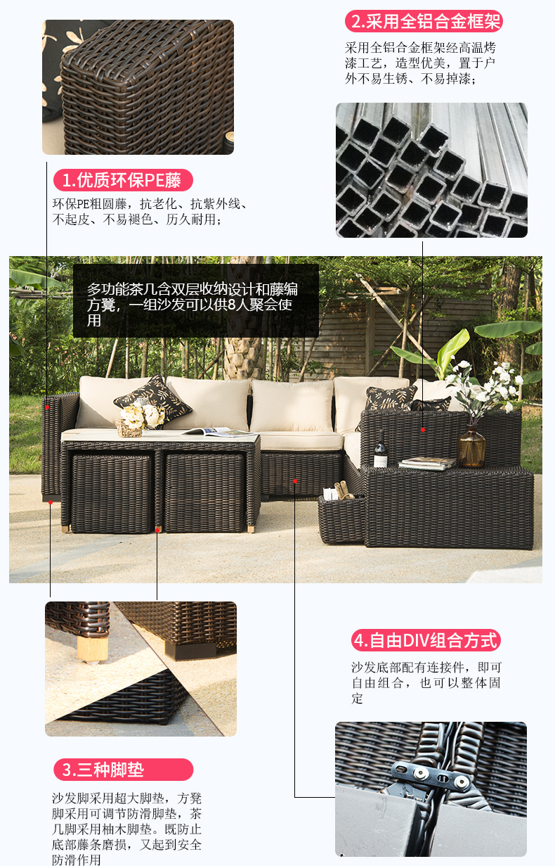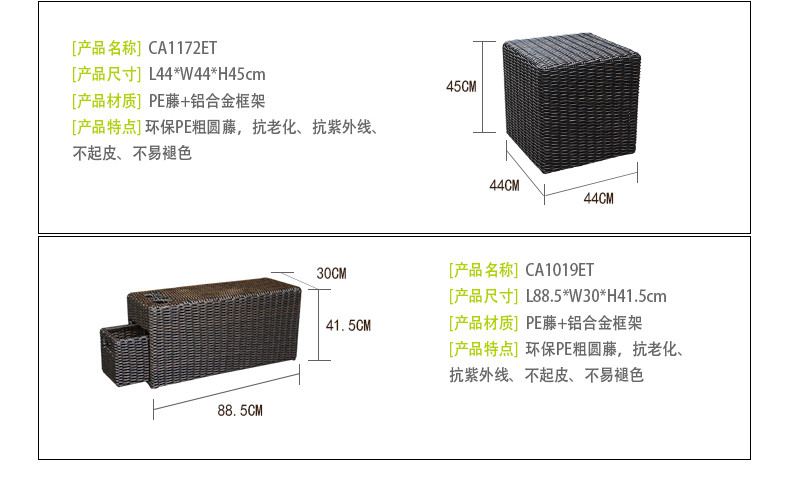 - 材質:鋁合金框架+PE藤