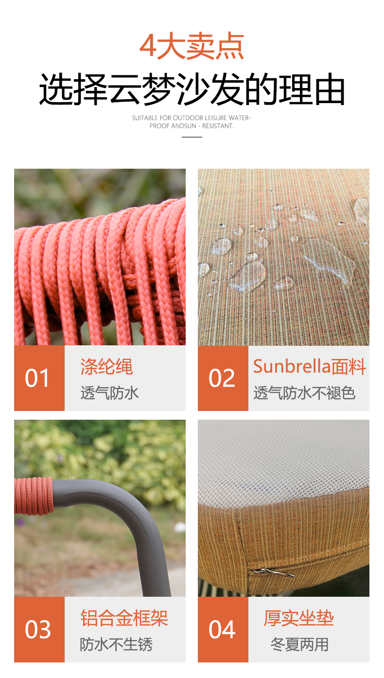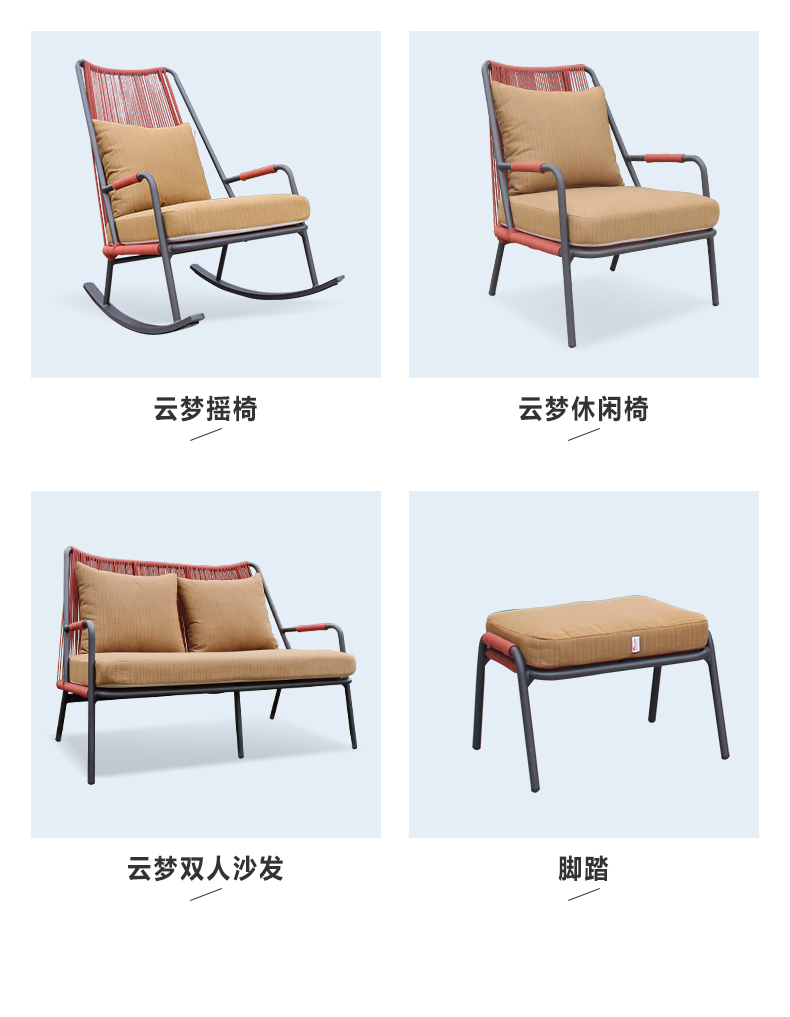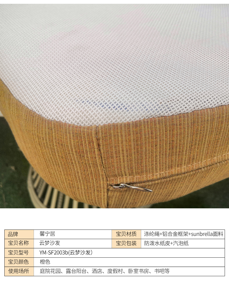 - 材質:鋁合金框架+尼龍繩+金棕進口坐墊+網布